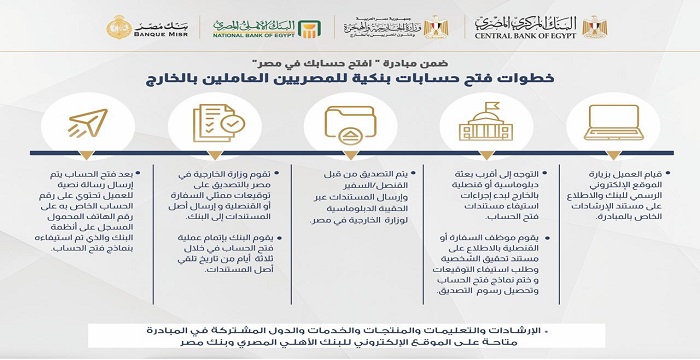 أطلق البنك المركزي المصري، ووزارة الخارجية والهجرة وشئون المصريين بالخارج، مبادرة “افتح حسابك في مصر” بالتعاون مع البنك الأهلي المصري وبنك مصر، تماشيًا مع رؤية الدولة المصرية لتلبية احتياجات المصريين العاملين بالخارج وتيسير كافة الخدمات المقدمة لهم.