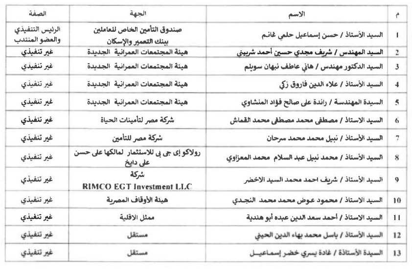 وقالت الشركة في بيان لبورصة مصر اليوم، إن تشكيل المجلس يكون على النحو التالي: